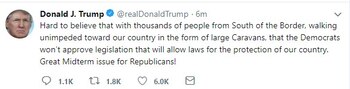 "Estados Unidos ha informado de manera enérgica al presidente de Honduras que, si la gran caravana de personas que se dirigen a Estados Unidos no es detenida y regresada a Honduras, no se dará más dinero o ayuda a Honduras, con efecto inmediato", escribió el mandatario en Twitter.