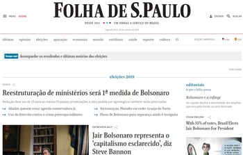 El diario de la principal ciudad brasileña se enfoca sobre las primeras medidas del presidente electo, que asumirá el 1 de enero de 2019: restructuración de los ministerios, que pasarán de 29 a 19, las privatizaciones y las obras pedidas por el sector del campo.
