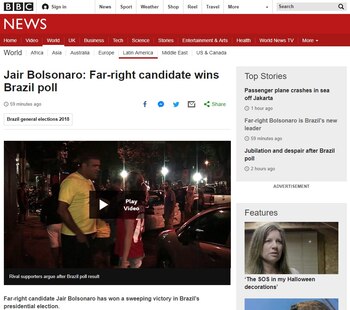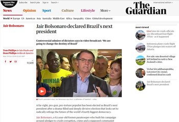La nota sobre la victoria de Bolsonaro del diario progresista británico cita a Clóvis Saint-Clair, un periodista con sede en Río que ha escrito una biografía no autorizada del presidente electo. Según el experto, "un cóctel de frustración de los votantes ante la sordidez política y la exitosa demonización del PT explicaron cómo un radical hasta entonces ridiculizado y marginal había sido catapultado desde el desierto político hasta la presidencia".