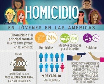 Más de la mitad de las 150.000 muertes anuales de jóvenes en las Américas son prevenibles, dijo la OPS, oficina regional de la Organización Mundial de la Salud (OMS), al atribuir un 24% de los decesos a asesinatos, un 20% a accidentes de tránsito y un 7% a lesiones autoinfligidas.
