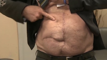 "Algunos dicen que fue fake", dijo Bolsonaro al levantarse el saco gris y la camisa blanca para exhibir las marcas de las intervenciones quirúrgicas ante las cámaras del canal SBT, al que concedió una entrevista exhibida la noche del jueves.