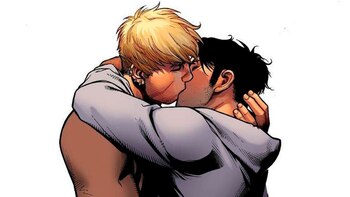 "Crivella intenta censurar (…) un beso gay, pero la justicia lo prohíbe", titula Folha de S. Paulo, con una imagen casi completa de el hechicero Wiccano y el guerrero Hulkling, dos personajes de los Jóvenes Vengadores que en la trama mantienen una relación amorosa, besándose. Están abrazados y totalmente vestidos.