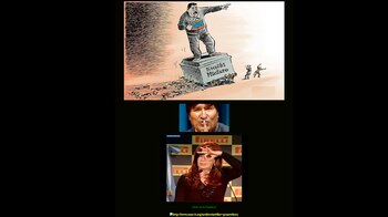 Aparecía, por ejemplo, una silueta del “Che” Guevara pero en vez de su rostro, aphabía una calavera. También había un dibujo de el dictador venezolano Nicolás Maduro. El chavista aparecía en forma de estatua pero el peso de su monolito aplastaba al pueblo.