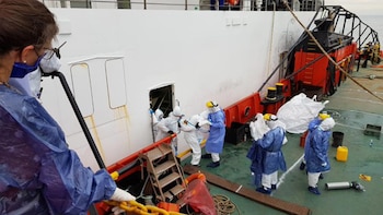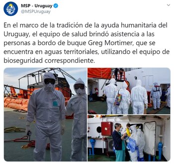 En la víspera, un equipo de 16 médicos y enfermeros uruguayos ingresó a la embarcación para realizar los tests de diagnóstico.