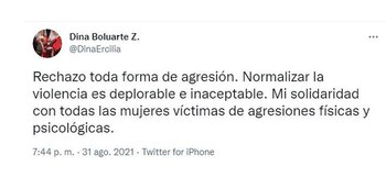 “El presidente Castillo tomará sus decisiones. (Bellido) no es la persona adecuada por este tipo de comportamientos, un jefe de Gabinete teniendo este tipo de expresiones. Este tipo de expresiones no son chiste, broma, son agresiones. Lo que siempre ocurre cuando alguien tiene ese tipo de cuestionamientos es negarlo”, subrayó.