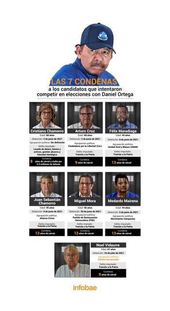 La feroz cacería que el régimen de Daniel Ortega desató contra todos los posibles candidatos presidenciales de la oposición, terminó este mes con condenas de entre ocho y 13 años de cárcel contra todos ellos.