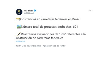 La información fue dada a conocer en el último balance de la Policía Federal de Caminos. Este martes se habían registrado cerca de 270 bloqueos. Las protestas son realizadas por adeptos del presidente Jair Bolsonaro quienes siguen descontentos con la victoria en las urnas de Luiz Inácio Lula da Silva, a pesar del discurso ofrecido por el mandatario, en el que repudia la interrupción del libre tránsito al catalogarlo como una ación similar a las que hace la izquierda.