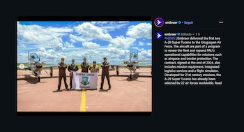 “Nos honra entregar los primeros A-29 Super Tucanos a la Fuerza Aérea Uruguaya. Este hito fortalece una alianza que se ha desarrollado durante más de 50 años, desde que Uruguay se convirtió en el primer cliente internacional en adquirir una aeronave de Embraer”, declaró Bosco da Costa Júnior, el presidente y director ejecutivo de Embraer, en declaraciones difundidas por la compañía.