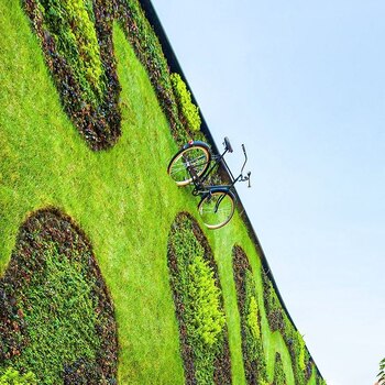 El muro tiene 280 metros cuadrados de áreas verdes. Más de 6000 plantas de 40 especies diferentes colman las paredes. Se estima que este jardín producirá el oxígeno necesario para 285 personas, reducirá la contaminación sonora y filtra 200.000 toneladas de gases nocivos de CO2.
