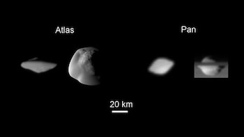 Las lunas de Saturno, Pan y Atlas, son las lunas más pequeñas del sistema solar. Sin embargo, a pesar de su tamaño, su influencia se puede ver claramente desde la Tierra en la forma de la prominente “brecha” que crean en el sistema de anillos del planeta.