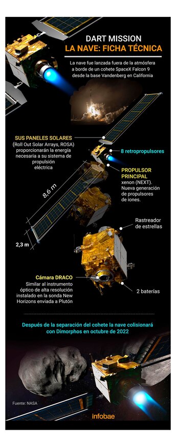 Con el tamaño de una pequeña máquina expendedora de 570 kilogramos, la nave se estrellará contra un asteroide de unos 5.000 millones de kilogramos. “A veces lo describimos como chocar un carrito de golf contra una Gran Pirámide”, dijo Chabot.