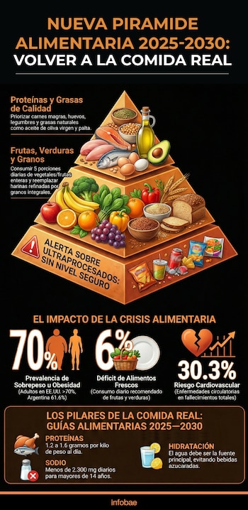 Este año, las Guías Alimentarias para los Estadounidenses 2025–2030, publicadas por el Departamento de Agricultura y el Departamento de Salud y Servicios Humanos de Estados Unidos, ambas agencias federales estadounidenses, proponen un mensaje central claro: “Volver a la comida real”, con énfasis en la evidencia científica que marca un rumbo claro: la necesidad de abandonar la dependencia de productos ultraprocesados, ricos en aditivos, azúcares, grasas de baja calidad y sodio.