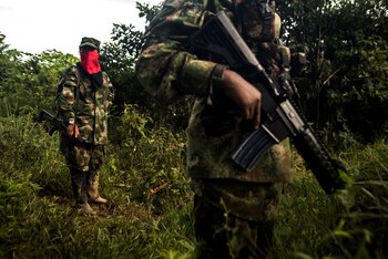 "La lucha armada sigue siendo un componente importante en las transformaciones que Colombia necesita", dice "Uriel", que esconde su rostro detrás de un paño rojinegro, los colores de esta guerrilla inspirada en la revolución cubana, en entrevista con AFP.