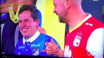 Nicolás Vikonis, el arquero de Millonarios y uno de los más destacados en toda la temporada, abrazó y felicitó al sordociego y su intérprete al final del enfrentamiento.