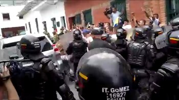 El ex líder terroristas de las Fuerzas Armadas Revolucionarias de Colombia (FARC), Rodrigo Londoño, alias "Timochenko", nuevamente recibió insultos y abucheos en su gira de campaña por la presidencia de Colombia. Esta vez un grupo de detractores de más de 30 personas se reunieron con pancartas en la Corporación de Periodistas del Valle, en Cali.