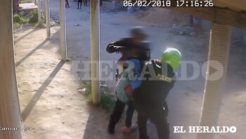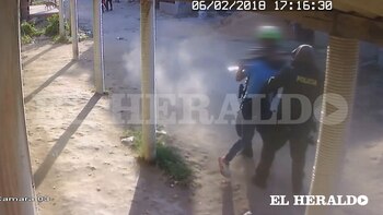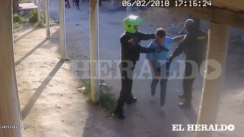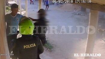 La mujer relató a El Heraldo que su hijo pidió una gaseosa en una tienda, se la tomó y se fue sin pagarla. La propietaria del comercio, entonces, llamó a la policía. Pocos minutos después, llegaron dos uniformados en una motocicleta y, al verlos, el joven se escondió en el mismo billar del cual había robado la bebida. Los agentes lo sacaron tomándolo del cuello.