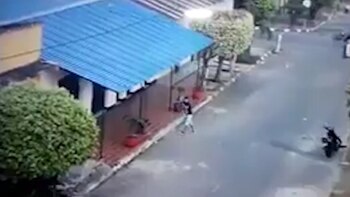 Las cámaras de seguridad del municipio colombiano de Tame, en Arauca, registraron el dramático momento en que un hombre ataca la estación de policía de la región.