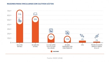 El 71% de las familias cocales afirma que se dedican a los 'narcocultivos' porque es lo más rentable, y el 59% dicen que no hay más opciones económicas. Otras razones que alegan para dedicarse al oficio son que no hay compradores de productos legales y por presión de organizaciones criminales financiadas con el narcotráfico. Esto quiere decir que las labores tradicionales de los campesinos son casi imposibles de desarrollar en estas zonas porque sus ingresos son muy bajos, debido al olvido estatal histórico.