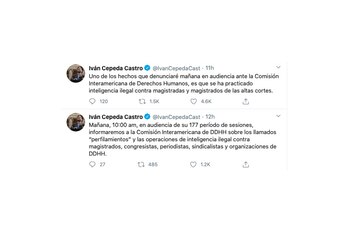 De otro lado, en su cuenta de Twitter, el senador Iván Cepeda acusó a Álvaro Uribe de difamación contra los magistrados del caso: