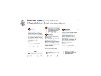 Los trinos del exsenador Uribe derivaron en la solicitud de su defensa para que el magistrado Quintero Bernate no sea parte de la decisión que se tome el día de hoy: