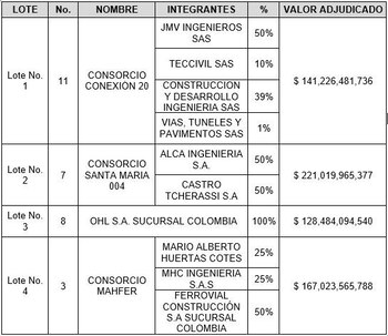 Los proponentes ganadores de la licitación pública 004 de 2020, que tendrán a su cargo el desarrollo de este primer tramo de la Troncal Av. Ciudad de Cali son: