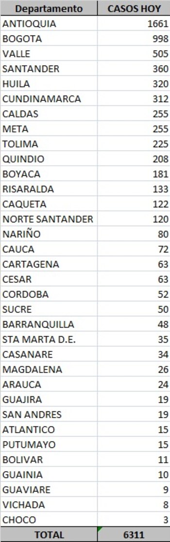 En cuanto a los contagios del Covid-19 por ciudades y departamentos del país, Antioquia y Bogotá siguen punteando la lista.
