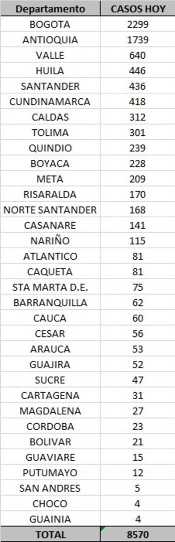 El Ministerio de Salud reportó, este jueves 22 de octubre, 8.570 casos nuevos de coronavirus en Colombia. En las últimas 24 horas se procesaron 51.544 pruebas, 30.840 son PCR y 20.704 antígenos.