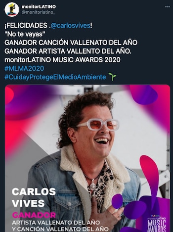 Del Monitorlatino Music Awars, que tiene como objetivo reconocer la música latina, participaron artistas colombianos de la talla de Carlos Vives, Sebastián Yatra, Karol G y Camilo, quienes protagonizaron varios de los shows de la noche y fueron galardonados por su música y la cantidad de escuchas que tienen en la radio latina.