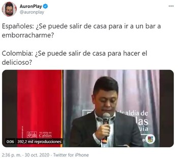 “Españoles: ¿Se puede salir de casa para ir a un bar a emborracharme? Colombia: ¿Se puede salir de casa para hacer el delicioso?”.