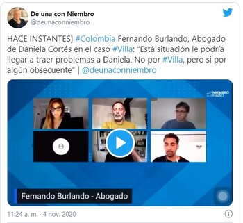 “¿Ella podrá vivir tranquila si Villa es convocado? Yo garantizo que no”, dijo Burlando en el programa, para luego añadir: “En Colombia, Villa es un gran ídolo y esta circunstancia le puede generar un problema a Daniela y drama a su familia”.