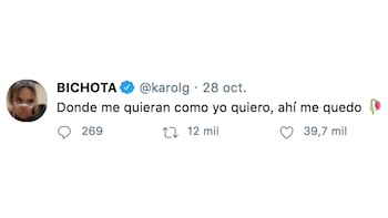 El pasado 23 de octubre los rumores se acrecentaron por un tweet en el que la antioqueña afirmó: “donde me quieran como yo quiero, ahí me quedo”. Para muchos internautas estas palabras fueron símbolo de despecho, de hecho muchos de los seguidores de la cantante comentaron: “¿se viene el fin de la relación?” y “¿qué pasa con el corazón?”.