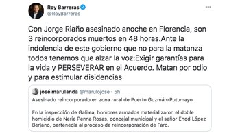 Con estas muertes se llegó a 241 exguerrilleros de las Farc asesinados después de la firma de los Acuerdos de Paz, razón por la cual voceros y exmiembros de la antigua guerrilla peregrinaron hasta Bogotá el pasado 1 de noviembre.