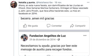 “Este usuario, que empezó usando el nombre @Diosexiste198, aseguraba ser de una de las familias afectadas por las inundaciones y mencionaba diferentes barrios de la capital del departamento, Quibdó, en sus publicaciones”, contó el medio y al mismo tiempo afirmó que, “algunas personas señalaron que creyeron que se trataba de un intento por ayudar a damnificados que se encontraban en varios sectores de la ciudad, otros advirtieron que era una contradicción”.