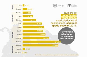 Asimismo, se detectó que a mayor grado escolar, menor cantidad de estudiantes venezolanos matriculados en el sistema educativo colombiano.