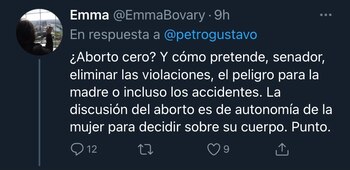 En la contraparte, Angélica Lozano, por el Partido Verde, aseguró: “no intentemos impedir el ejercicio de los derechos de millones de mujeres en Colombia. El aborto en Colombia es un derecho y por nada en el mundo permitiremos que sea una obligación”.
