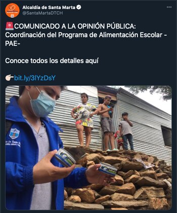 “Desde la coordinación del PAE se entablarán acciones legales contra aquellas personas que mediante la difusión de información falsa pretenden generar zozobra y desconfianza entre la ciudadanía, en contra del desarrollo de este programa”, advirtió la Alcaldía de Santa Marta en el mismo comunicado.