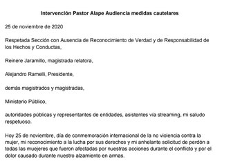 Este 25 de noviembre se llevó a cabo, ante la Jurisdicción Especial para la Paz, la última audiencia para otorgar medidas cautelares a los firmantes del acuerdo. La conversación se dio en medio de la intervención del Pastor Alape quien estaba en el lugar pidiendo justicia por cada uno de los excombatientes que han muerto asesinados luego del proceso de paz.