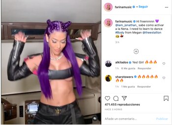 En uno de esos retos, la artista hizo que su Instagram se descontrolara. Farina decidió compartir diferentes bailes con retos que encontraba en Tick Tock. Sin embargo, fue hasta que sus movimientos de cadera, al ritmo del éxito musical Body, de la cantante Megan Thee Stallion, estallaron las redes sociales y la convirtieron en tendencia.