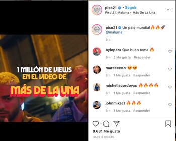 Luego de los millones de reproducciones logradas con su último sencillo Querida, Piso 21 quiere cerrar el año con una canción que ponga a bailar a todos hasta la madrugada, así sea en una fiesta virtual. El grupo ha unido fuerzas con el colombiano y también paisa Maluma, con quien hoy presentan su nueva canción Más de la una.