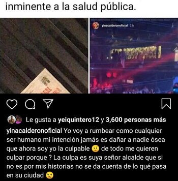 Según las primeras informaciones, las autoridades habrían decidido ocupar el reconocido centro nocturno después de que la empresaria y creadora de contenidos para redes sociales Yina Calderón, quien se encontraba en el lugar de fiesta con algunos amigos, publicara en su cuenta de Instagram un par de videos de la celebración, donde se ve que los asistentes a la discoteca no cumplen con las reglamentaciones impuestas para evitar el contagio del covid-19.