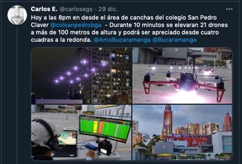El pasado martes 29 de diciembre de 2020, el cielo de Bucaramanga se llenó de luces de colores brillantes que formaban figuras extrañas y hacían movimientos rápidos de un punto a otro. Los ciudadanos se alarmaron por el suceso y muchos empezaron a grabar el momento asegurando que eran ovnis que visitaban la ciudad.