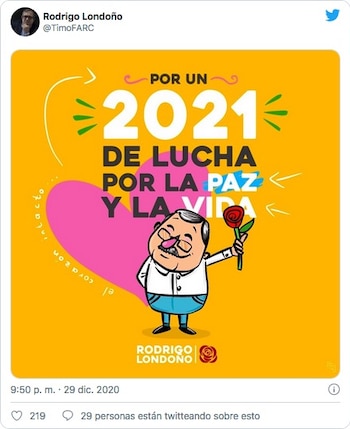 Aunque no se ha referido a su estado de salud actual, Londoño compartió una imagen en su cuenta de Twitter el pasado 29 de diciembre, enviando un mensaje de paz para el año que se acerca.