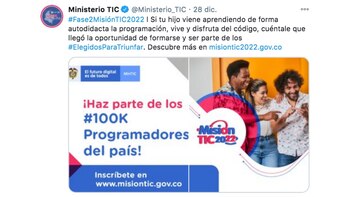 Según el MinTIC, en 2021 espera formar a 50.000 colombianos en lenguajes de programación. Los interesados podrán postularse a la convocatoria hasta el próximo 12 de febrero, a través de la página de la Misión TIC 2022.
