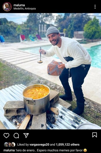 Horas después compartió en su feed una foto con un cucharón del sancocho con el mensaje “1ero de enero… espero muchos memes por favor”.