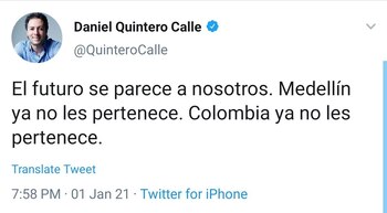 Tras la ola de denuncias e indignación por parte de los paisas y después de los trinos entre detractores del gobierno, Daniel Quintero se defendió con un mensaje donde afirmó que: “El futuro se parece a nosotros. Medellín ya no les pertenece. Colombia ya no les pertenece”.