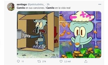 Además, varios se animaron a hacer memes sobre la situación económica de Camilo, que si bien en sus canciones dice que no tiene dinero, en la vida real es completamente lo contrario.
