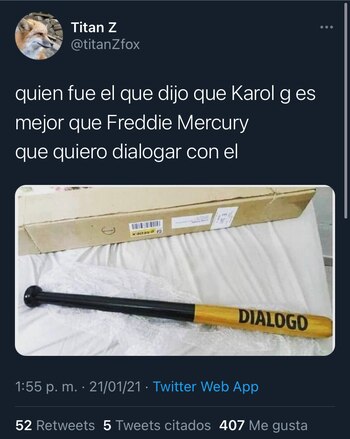 Precisamente, en redes sociales no podían creer la comparación entre Karol G y Freddie Mercury, motivo por el que los memes no se hicieron esperar, pues Mercury, a pesar de haber muero en 1991, aún sigue siendo uno de los referentes musicales más importantes de la historia.