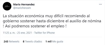 En diálogo con Pulzo, Mario Hernández expresó que ha hecho lo posible por mantener su empresa a pesar de la difícil situación que se vive por la pandemia “Yo tengo 79 años, trabajo desde los 10 y no me he podido pensionar, lo que tengo ahora lo he construido durante sesenta y pico de años”, manifestó.