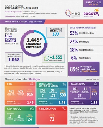 En los primeros 21 días del 2021, la Secretaría de la Mujer, a través de sus diferentes servicios, ha atendido a más de 4.000 mujeres de la siguiente manera: