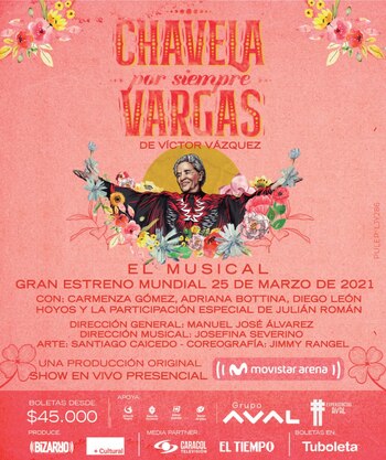 El Movistar Arena volverá a abrir sus puertas en marzo con el espectáculo musical Chavela por Siempre Vargas, una puesta en escena donde Carmenza Gómez, Adriana Bottina y Ana Sofía González pondrán en tarima los momentos más representativos de una de las cantantes mexicanas más importantes de los últimos tiempos.